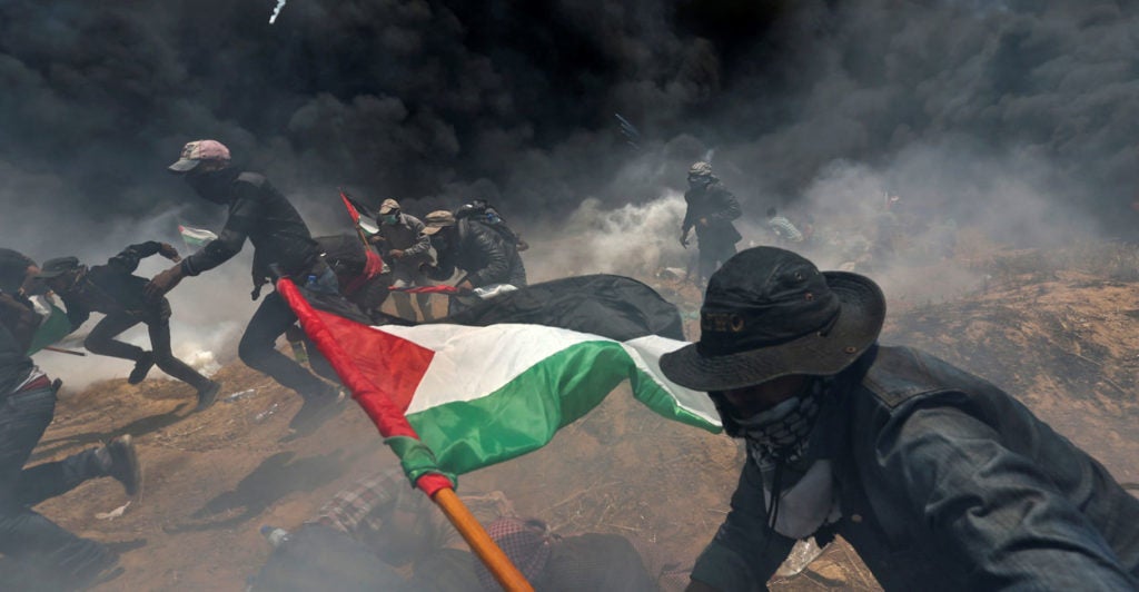 Thousands of Palestinians protested today as the new embassy was opened. (Photo: Ibraheem Abu Mustafa/Reuters/ Newscom)
