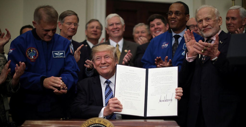 President Donald Trump on Thursday signed a space policy directive, calling for “updating and refocusing” those policies in a bid to promote innovation and modernize American commercial space policy.
