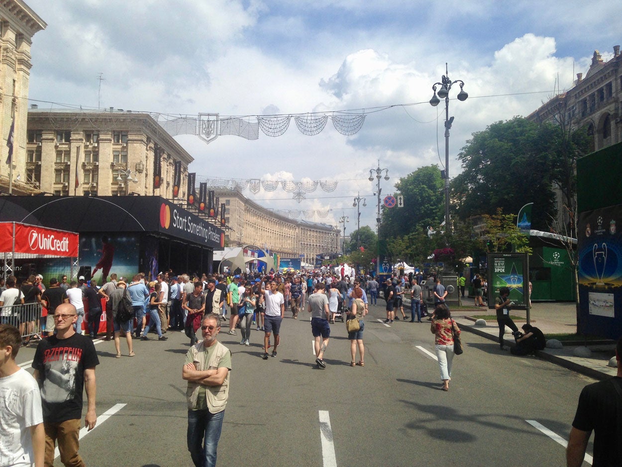 Kyiv’s central thoroughfare of Khreshchatyk was turned into a fan zone in the lead-up to Saturday’s Champions League final soccer game.