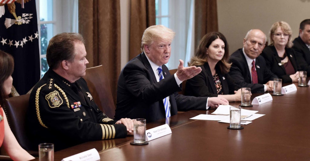 “Each of you has bravely resisted California’s deadly and unconstitutional sanctuary state laws,” Trump said, according to Fox News. “You’ve gone through a lot, too, although it’s become quite popular what you do.”
