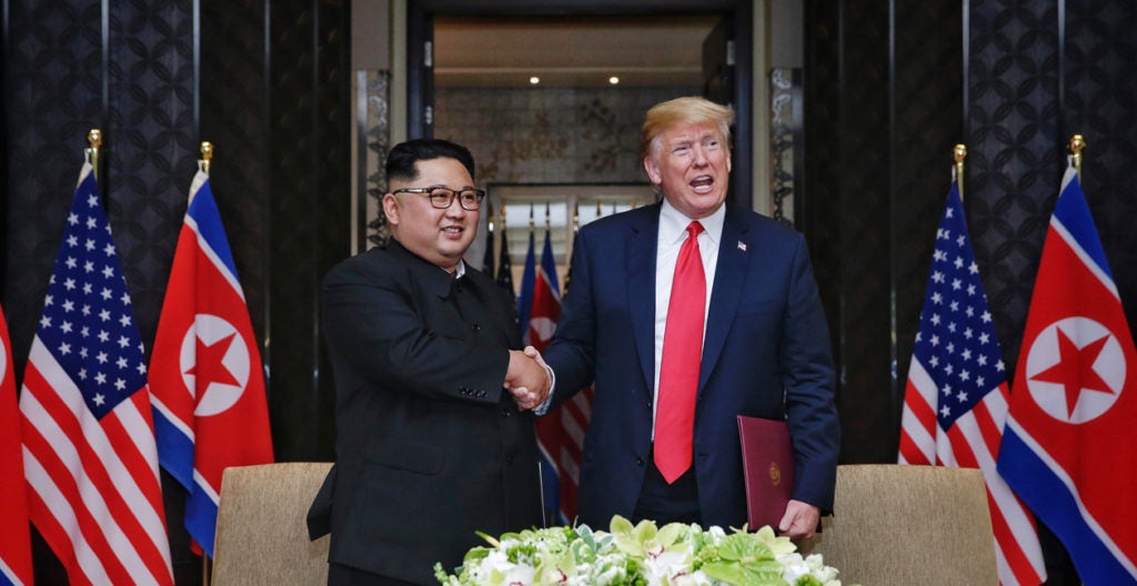 Trump made his comments at a ceremony during which the two leaders signed what Trump called a “comprehensive” and “historic” agreement, a document that offers North Korea an opportunity for improved relations and security guarantees in exchange for commitment to “the complete denuclearization of the Korean Peninsula.” The president said the denuclearization process will begin “very quickly.”