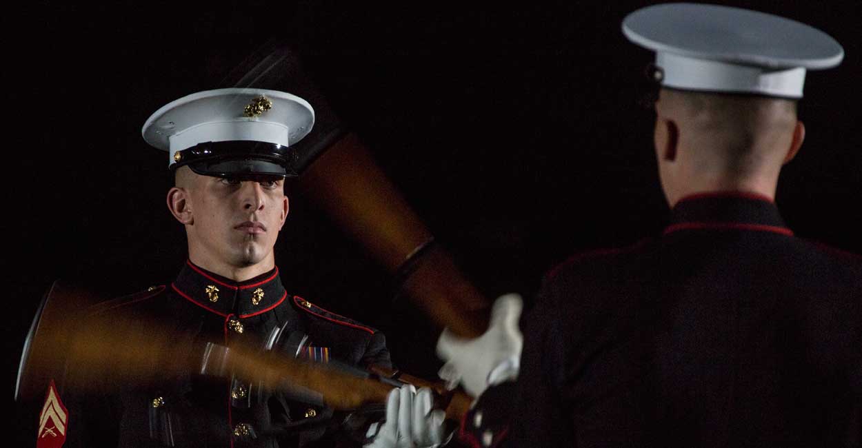 It includes the Marine Corps Color Guard, music by the Marine Corps Drum and Bugle Corps, the “President’s Own” Marine Band, and the Marine Corps Silent Drill Platoon. It even includes an appearance by Cpl. Chesty XIV, the official bulldog mascot of the Marine Barracks. He is named after Lt. Gen. Lewis “Chesty” Puller, the most highly decorated Marine in history, and someone known for his more pithy quotes, such as: “So they’ve got us surrounded. Good! Now we can fire in any direction; those b*****ds won’t get away this time!”