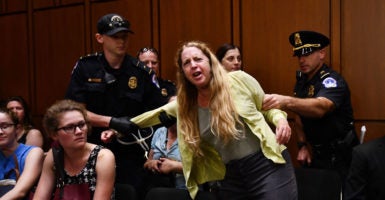 A demonstrator is removed from Judge Brett Kavanaugh’s confirmation hearing. (Photo: Kevin Daley/Daily Caller News Foundation)