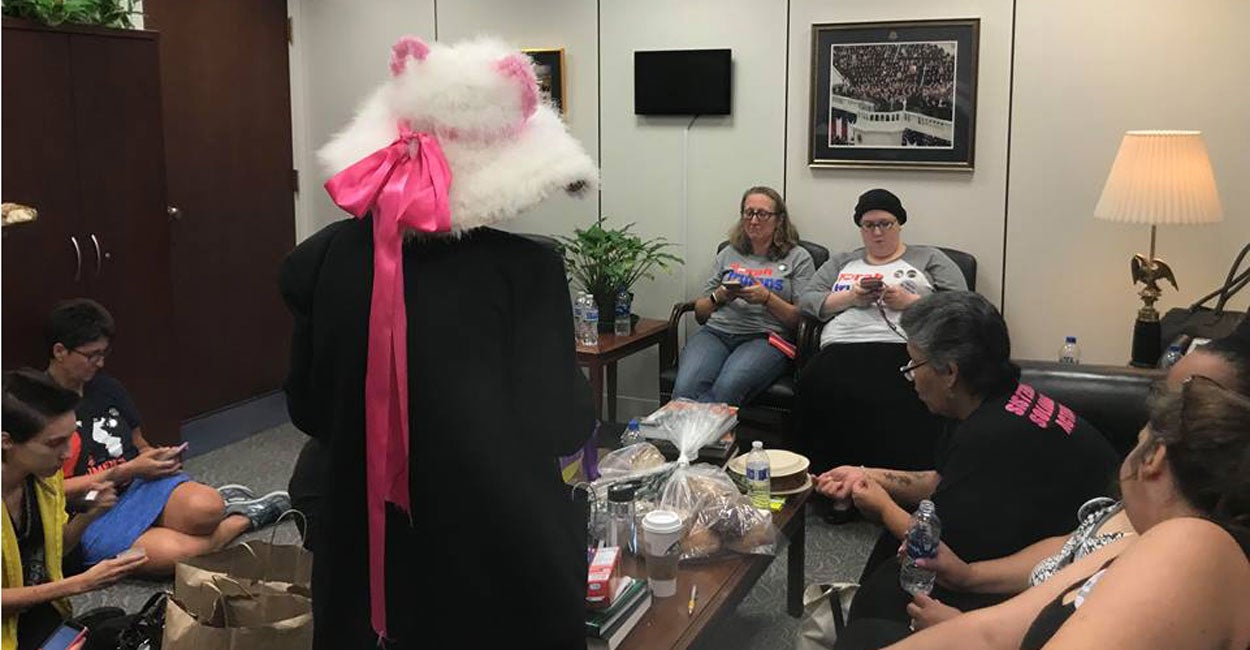 The several dozen protesters, who spent a majority of their time in Grassley's office eating lunch, were monitored by police and told not to crowd the desk area of Grassley’s staff. They eventually moved on to another office.