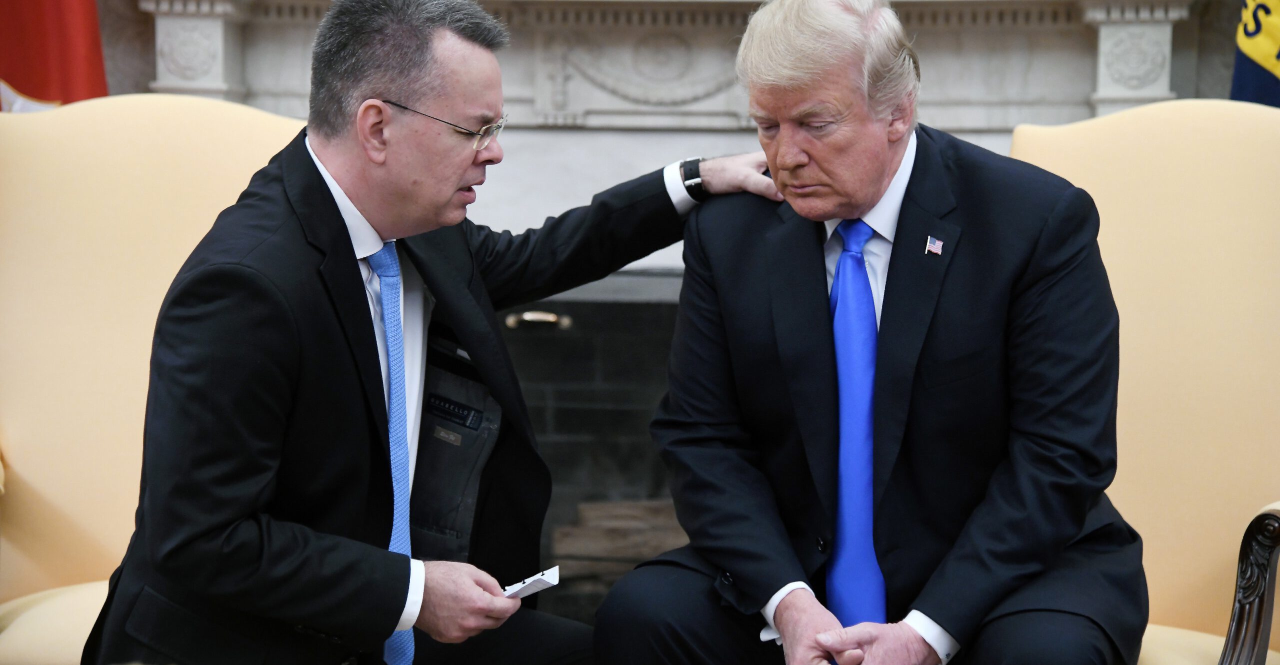 Before long the Brunsons were meeting President Donald Trump in the Oval Office of the White House, where the pastor dropped to one knee and prayed for the commander in chief, Associated Press reported.