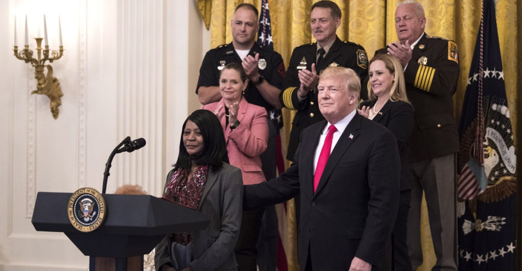 During the White House event, Trump recognized the Border Patrol, as well as Immigration and Customs Enforcement, for tackling the crisis.