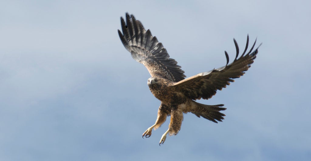 When flocks of birds fly too close to airports, hotels, or landfills, property managers call someone like professional falconer Scott Timmons.