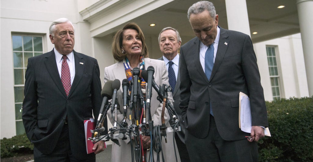 After the White House meeting, Senate Minority Leader Charles Schumer, D-N.Y., told reporters who shouted questions: “Will you please let us speak for a few minutes?”