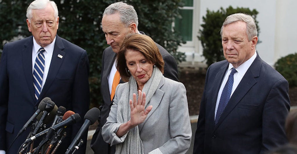 Pelosi began talking about the 800,000 federal employees across 25 percent of the federal government that would not be paid.