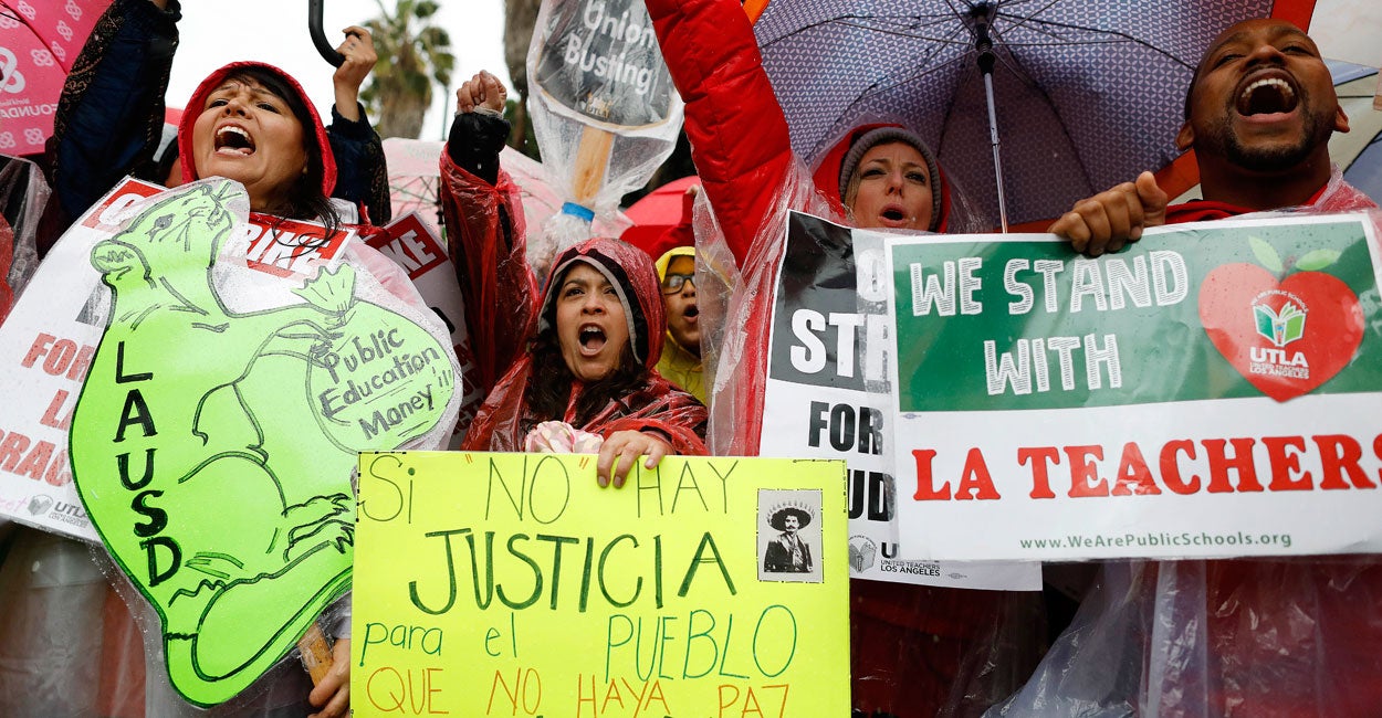 Although students in the Los Angeles Unified School District—the second-largest school district in the country—can still access the schools, classes are being taught by substitute teachers while teachers outside are striking.