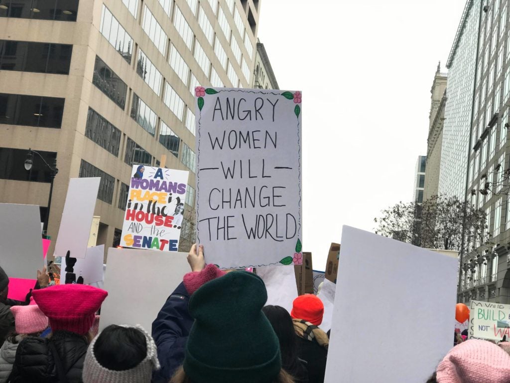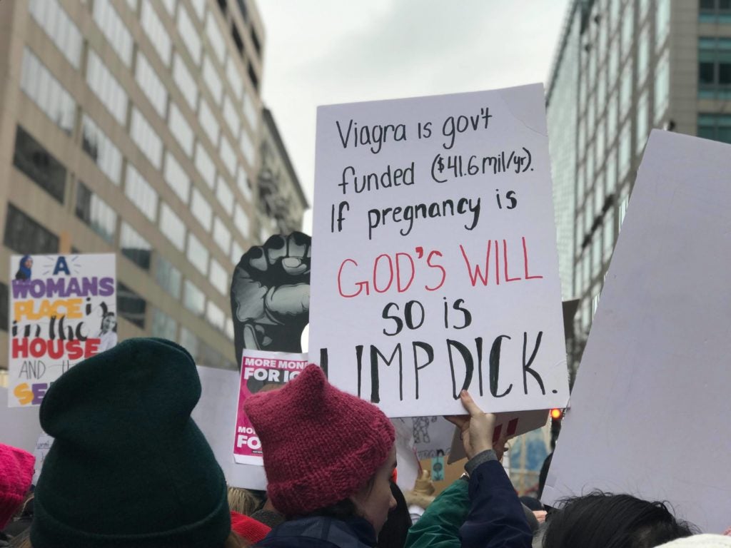 Multiple signs at the Women’s March touted that idea that compelling and change-oriented “feminism” is angry, and that women must use terms like “vagenda” to further their cause.