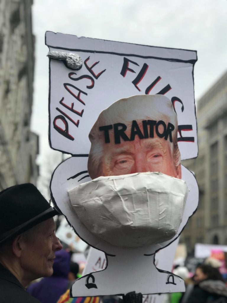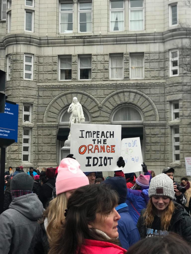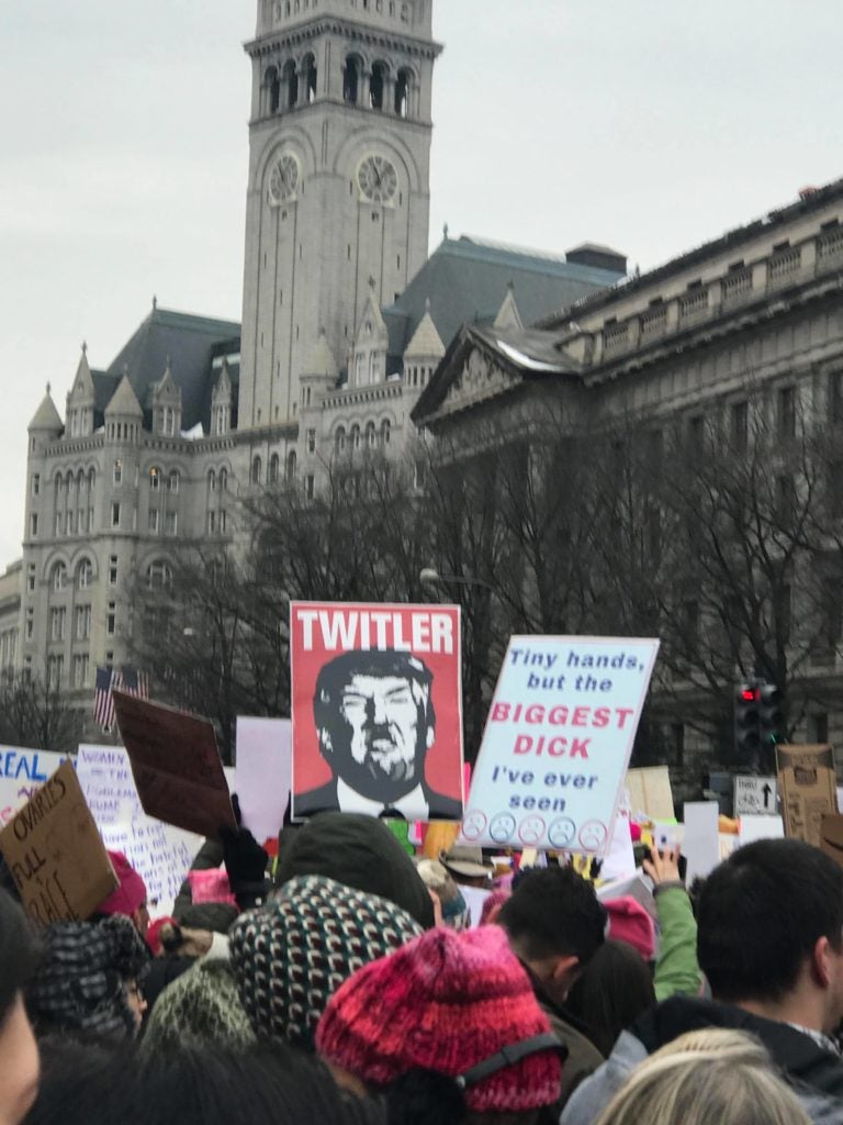 I found it ironic that a march that describes itself as an event to advocate “women’s rights” included such a large amount of signs and memorabilia protesting President Donald Trump.