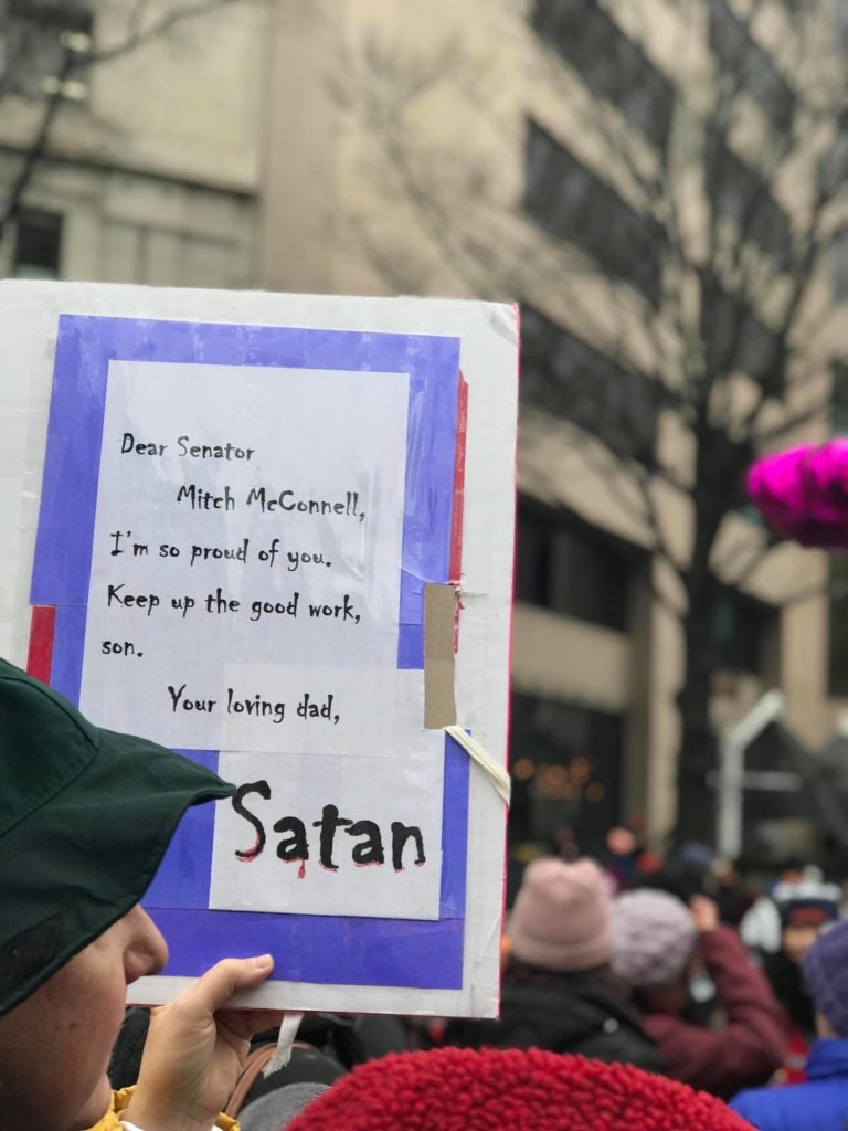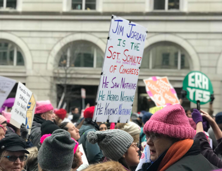I saw multiple signs with hateful messages to conservative lawmakers such as Senate Majority Leader Mitch McConnell, R-Ky., and Rep. Jim Jordan, R-Ohio, co-founder of the House Freedom Caucus, a coalition of conservative lawmakers in the House of Representatives.