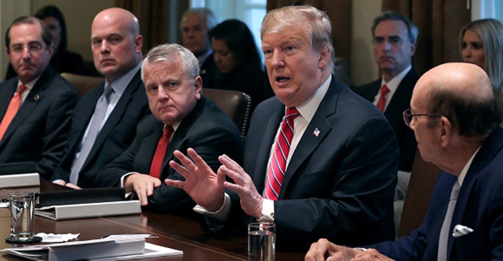 “Am I happy, at first glance? I just got to see it. The answer is, no, I’m not,” Trump said at the start of a Cabinet meeting at the White House.