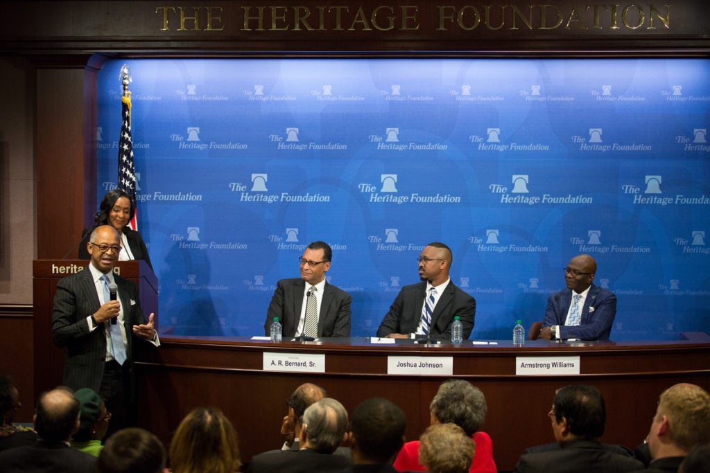 The panel included conservative broadcaster Armstrong Williams, Pastor A. R. Bernard Sr., National Public Radio’s Joshua Johnson, and Heritage’s James.