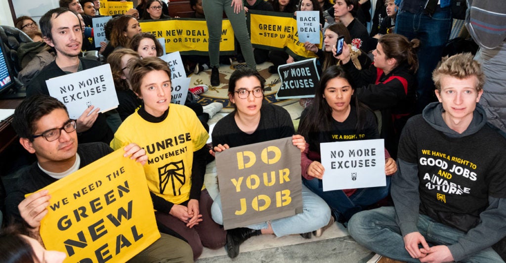 The Sunrise Movement first attracted media attention when hundreds of its followers organized sit-ins at congressional offices following the 2018 midterm elections. The movement’s network of activists is touted as including teenagers and college-age students and graduates.