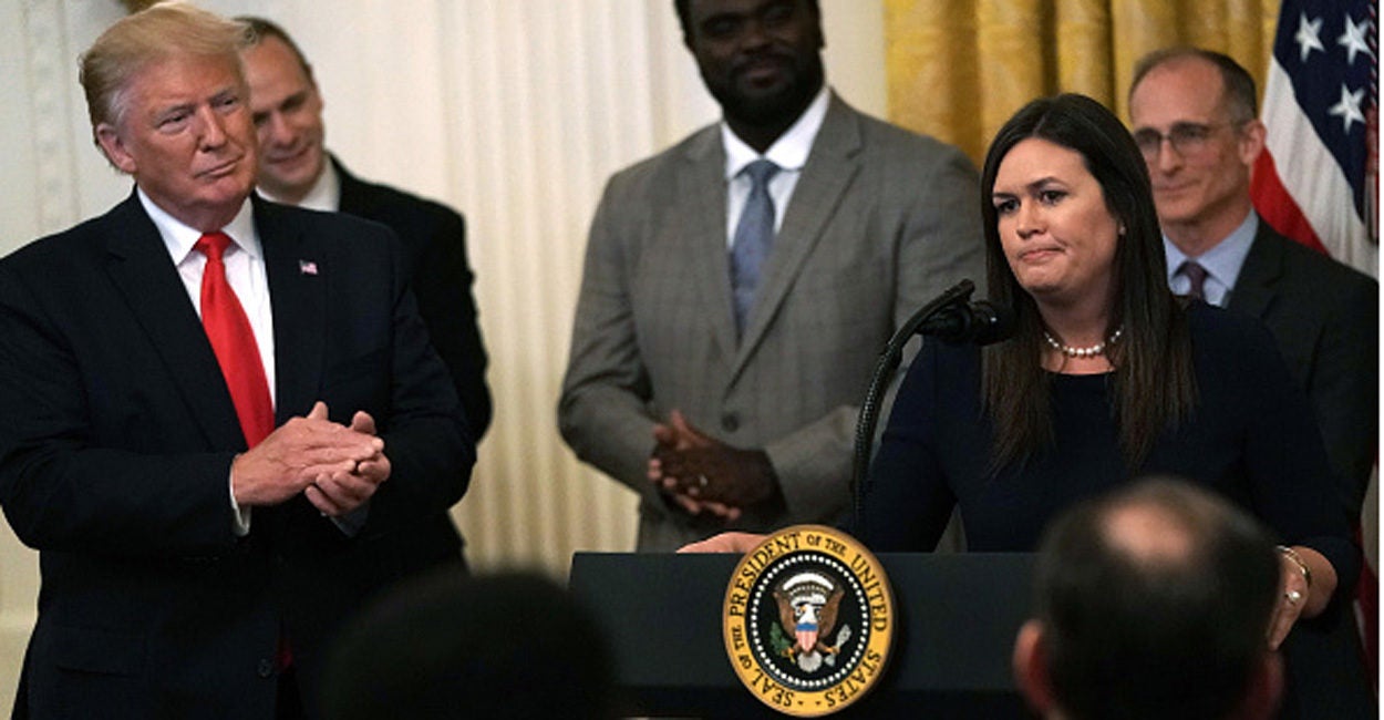 Sanders, who took the job in July 2017 after initially serving as deputy press secretary, also worked on the Trump campaign. She is the daughter of Mike Huckabee, a former Arkansas governor and Republican presidential candidate.