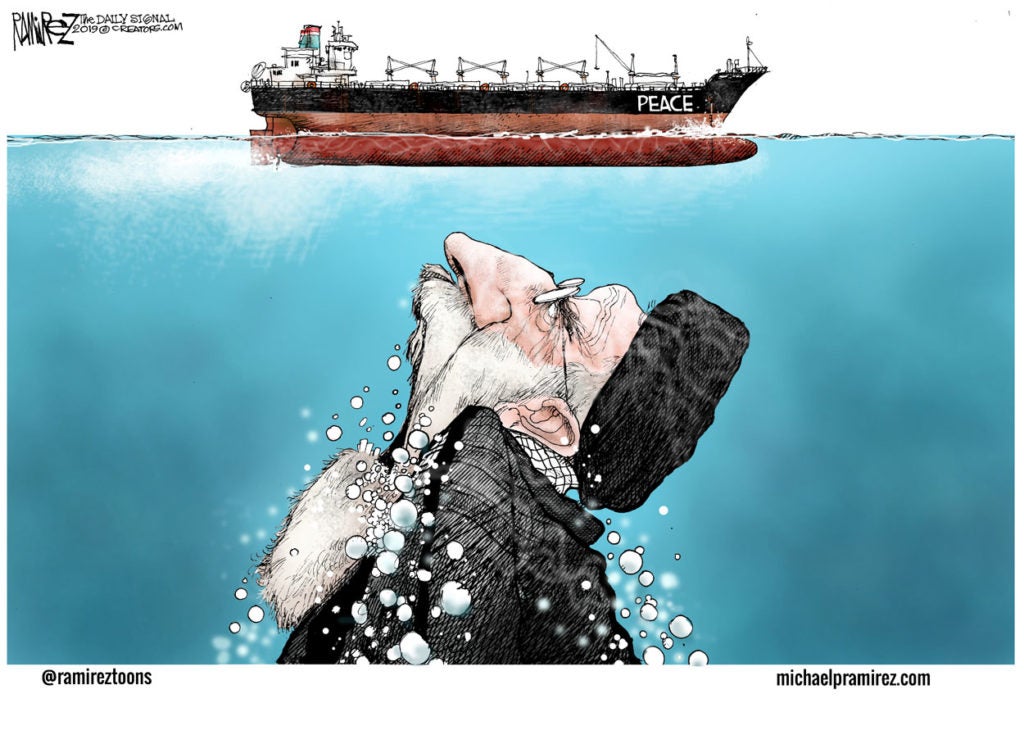 Cartoon: Iran Takes Terror Mischief to High Seas Michael Ramirez 6 years ago Related posts: Trump Announces Terms of Israel-Palestine Peace Deal, Dependent on Hamas Acceptance Trump Could Give Israel OK to Resume Fighting If Hamas Doesn’t Uphold Deal