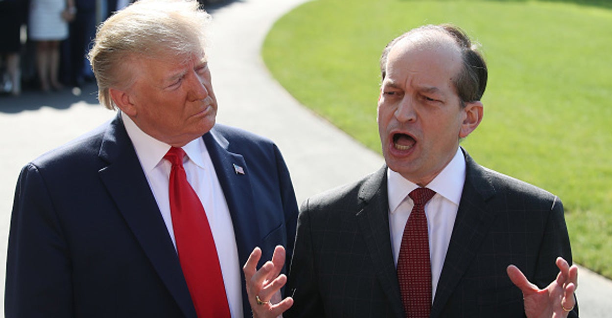 When departing from the White House Friday, Trump told reporters, “I want to thank Alex Acosta. He was a great great secretary.”