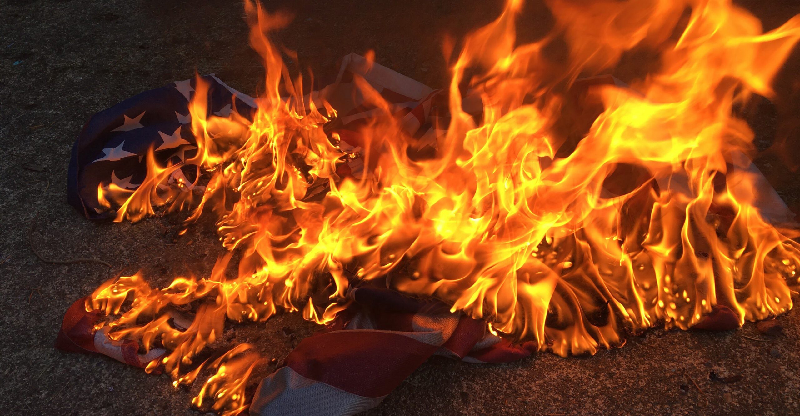 ‘America Was Never Great!’: Communist Group Burns American Flag as Trump Visits