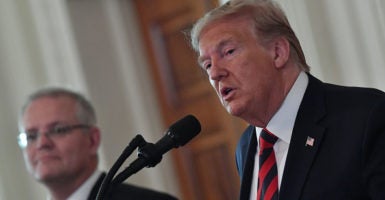 Australia’s Morrison said he and the president did not discuss Iran, but during the press conference he characterized the United States as having a “calibrated, I think, very measured response.”