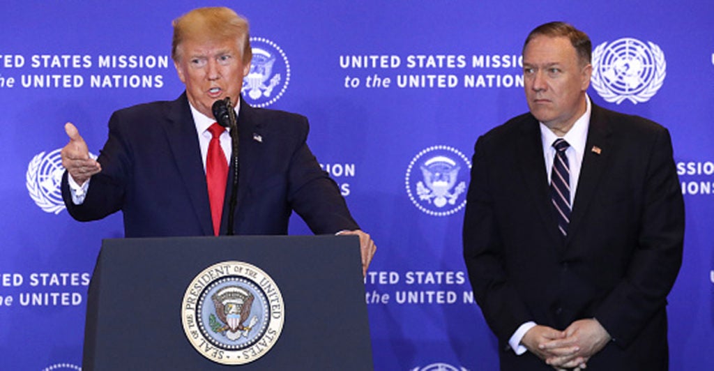 “With all of this tremendous work that we’ve done, the press doesn’t even cover it,” Trump said, flanked by Secretary of State Mike Pompeo and Treasury Secretary Steven Mnuchin.