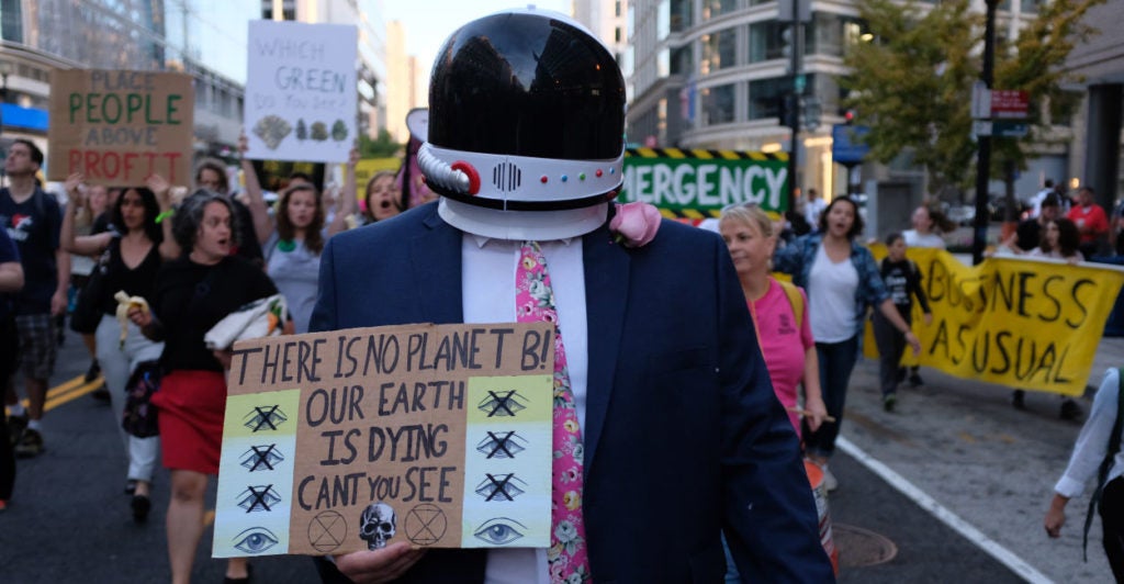 Along the route, the marchers shouted out warnings that painted an apocalyptic vision of the future: New York City will vanish under rising seas. Coasts will vanish.