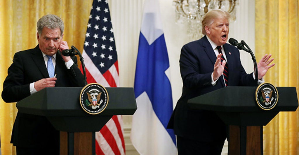 During his opening comments, the Finnish president said he visited museums in Washington and that Americans should continue their democracy.