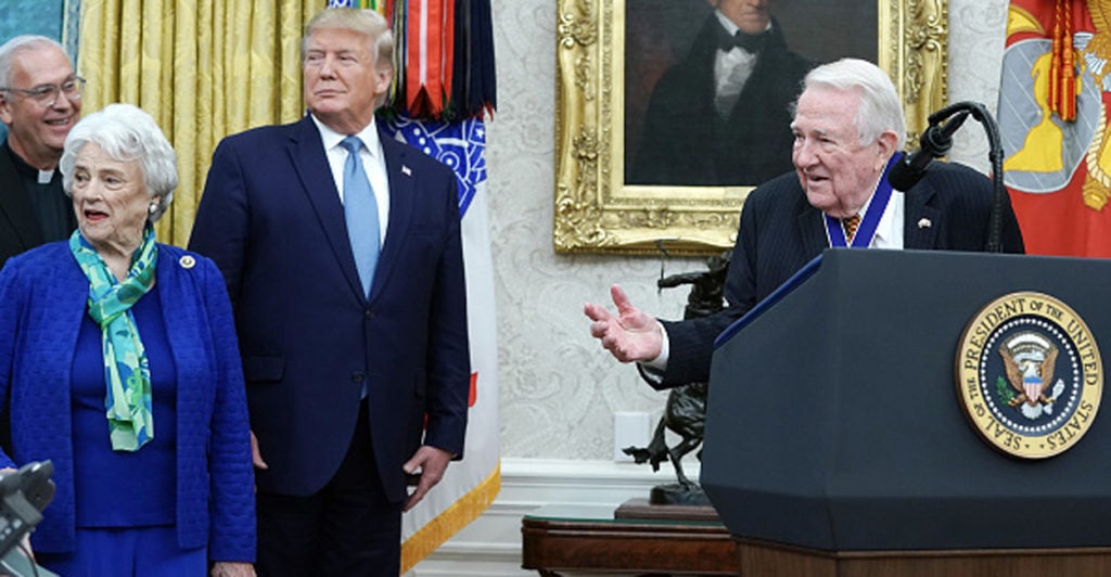 You are an inspiration to liberty-loving citizens everywhere. You’re just an inspiration, period. Everybody that knows you uses that word: You’re an inspiration. On behalf of a grateful nation that I love and that we serve, I want to thank you. I want to thank you for your incredible lifetime of exceptional service and of devotion to our country.