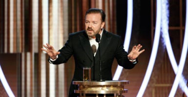 At the annual Golden Globes, an awards show for both movies and television, on Sunday night, host comedian Ricky Gervais was actually funny, lampooning Hollywood in general and its “woke” culture in particular.