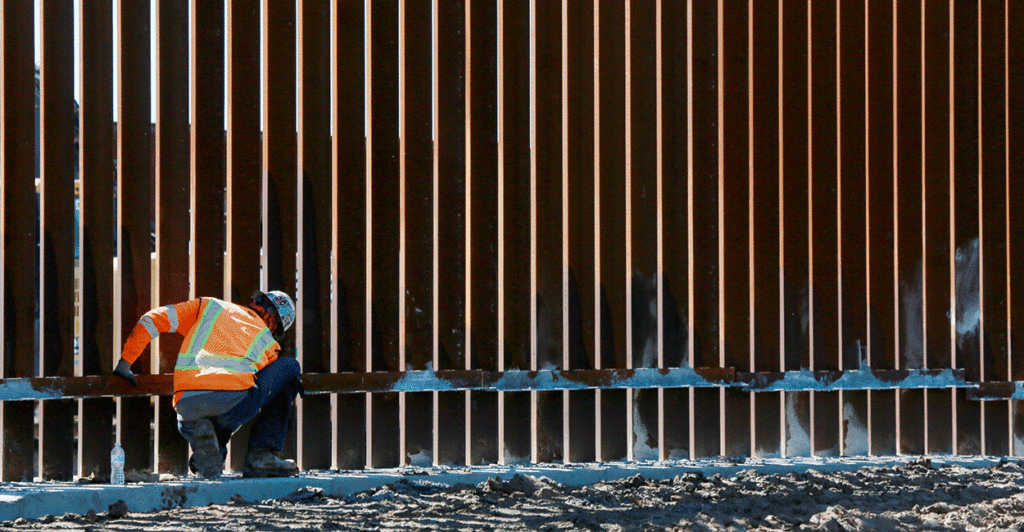 In plain sight behind the acting homeland security secretary was newly built border wall that stood roughly 30 feet high and included anti-climbing plates. Adjacent to the new wall was the older—and much smaller—anti-vehicle barrier, which stood about waist-high. Much of the new border wall has replaced these small walls or dilapidated barriers.