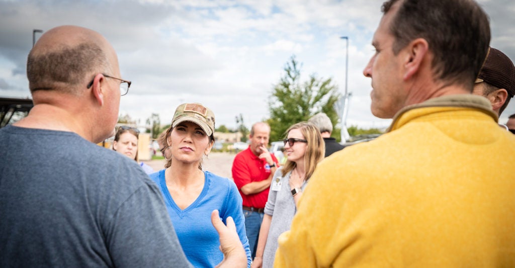 Noem: FEMA [the Federal Emergency Management Agency], obviously, is going to be helpful. We had five different FEMA declarations in the state, which is unprecedented for our state, and we’re partnering with them. The state is doing some financing for local counties and cities so that they can build back their roads and infrastructure. We’ll get through it. South Dakota does.
