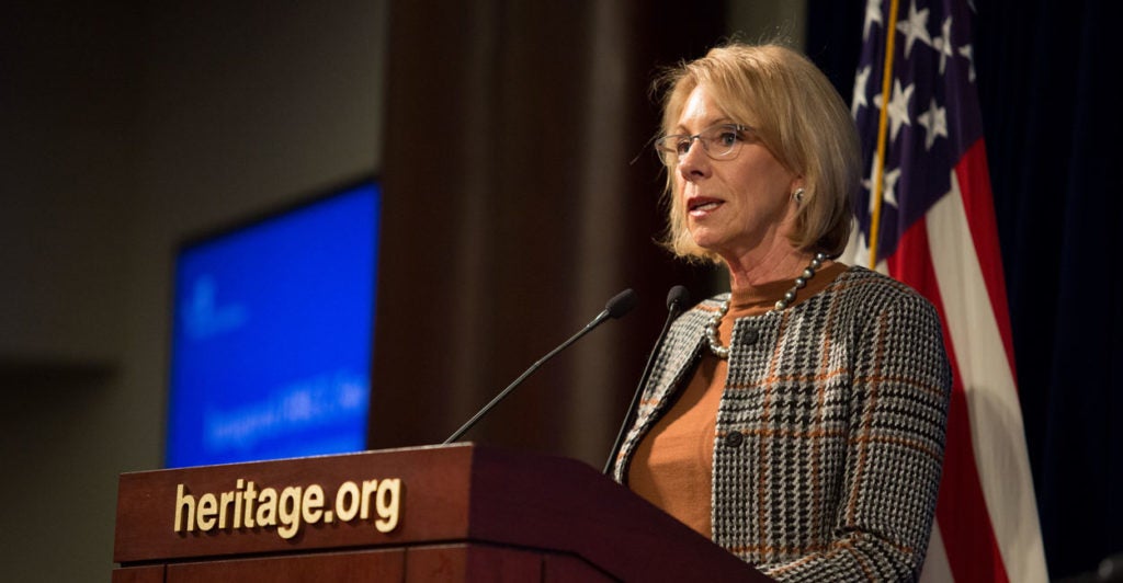 “Thank you for your commitment,” DeVos told her audience in closing. “President Trump and I value our continued collaboration.”
