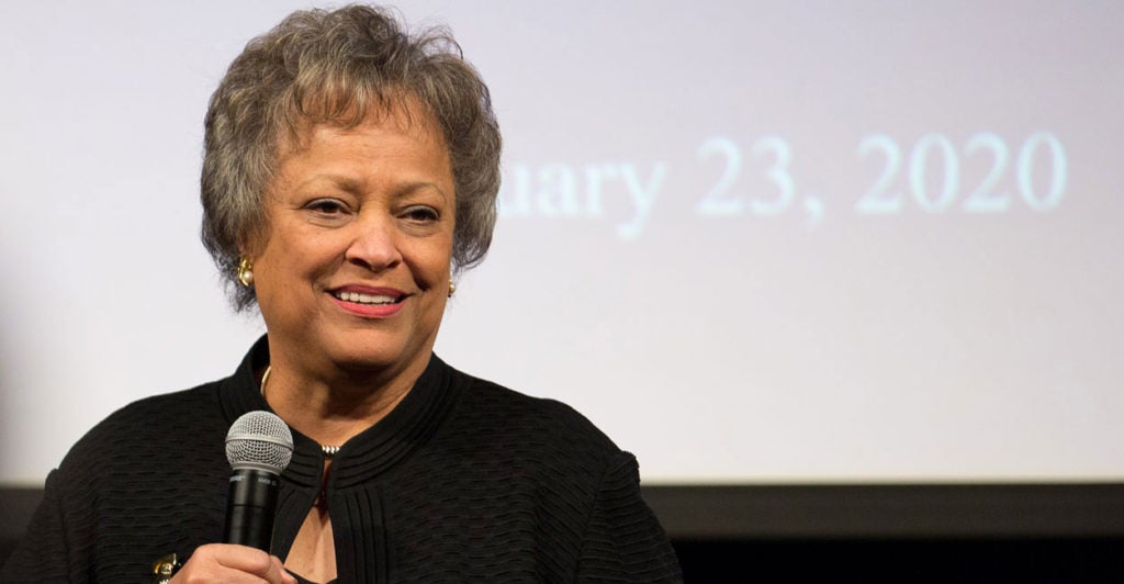 James went on to top positions in state and federal governments, as well as the private sector, after graduating from Hampton University, which she teasingly emphasized is “the university” in off-the-cuff opening remarks, prompting laughter.