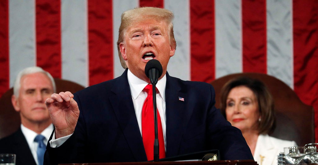 One could tell where things were headed when President Donald Trump arrived later than most other presidents and held up two newspapers with the headline “Acquitted,” a reference to the vote by the GOP majority in the Senate the day before, which refused to convict him of two articles of impeachment written by the Democratic majority in the House.