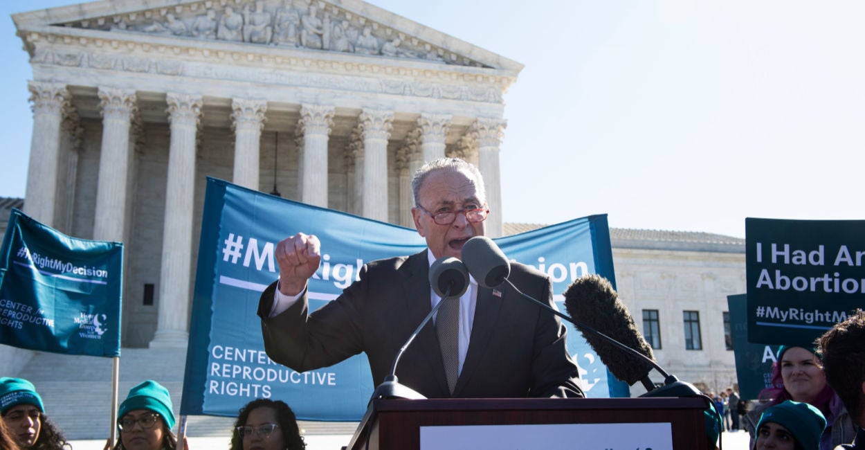 To backtrack: Schumer—in a tirade at a rally for abortion rights supporters outside the Supreme Court on Wednesday, delivered while the justices were hearing an abortion-related case—warned the two justices of the possible ramifications of a politically incorrect decision in the case, June Medical Services v. Russo.