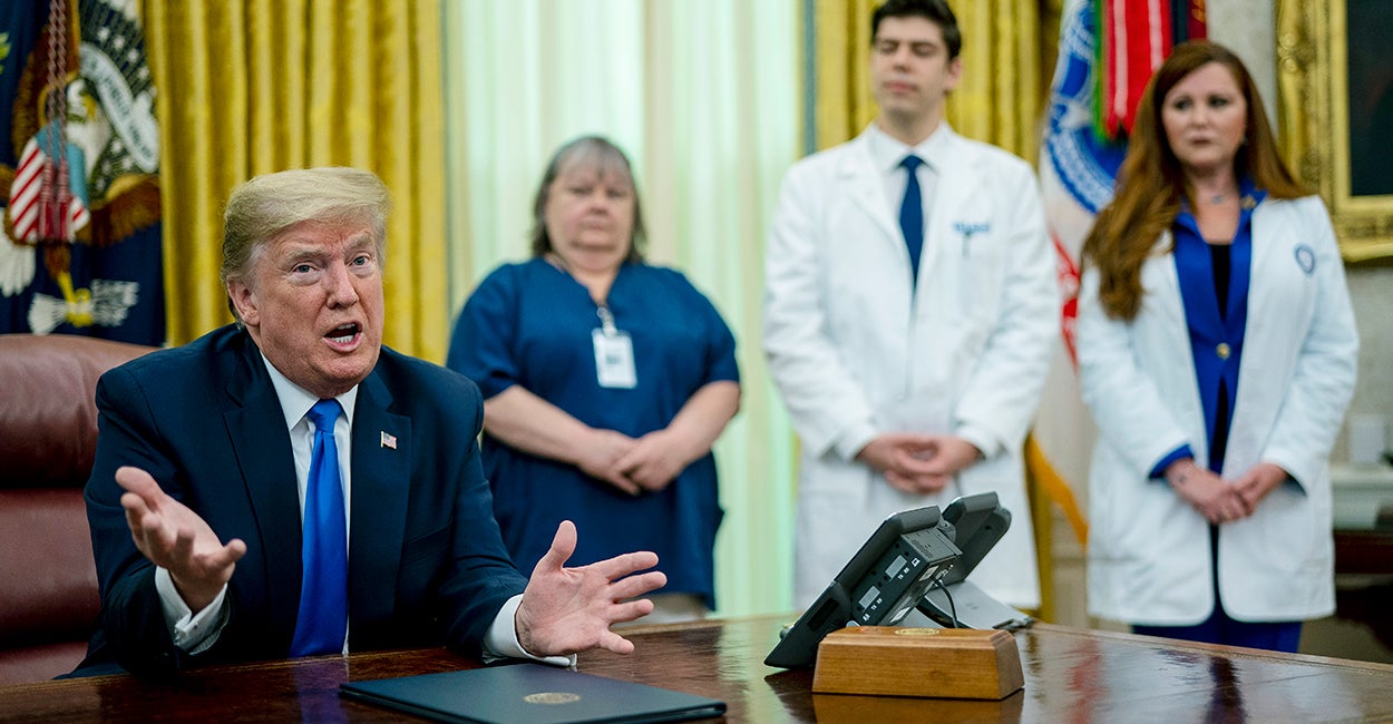 The reporter had asked the president why the nurses who flanked him during the meeting were not keeping their distance.