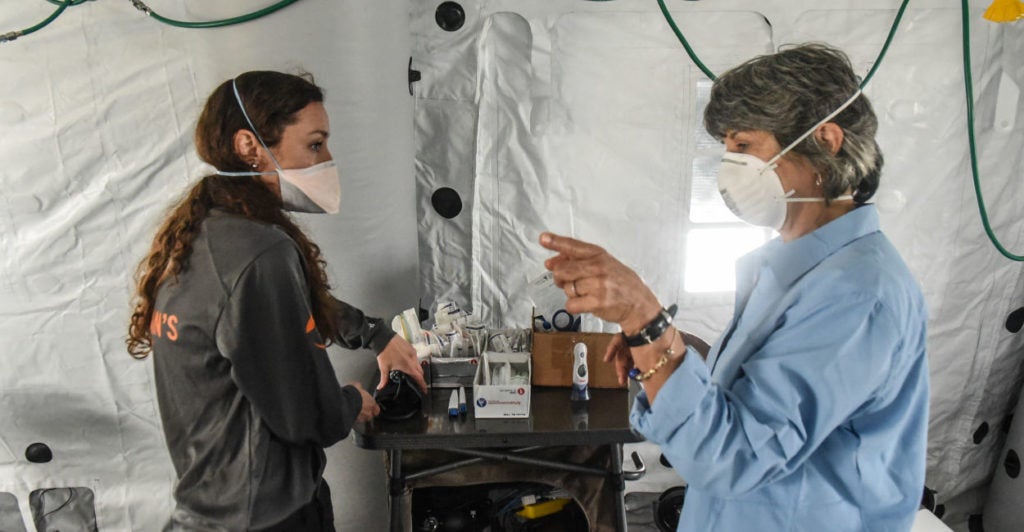 More than 240 relief specialists served at various times on the Disaster Assistance Response Team there. We ran a similar medical facility outside of Milan, Italy, that opened on March 20 and closed May 7. The 14-tent unit was set up adjacent to the Cremona Hospital in order to treat an overflow of coronavirus patients.
