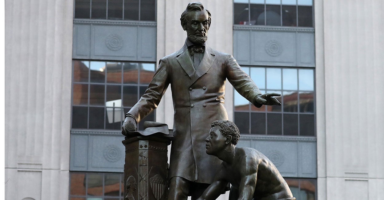 The relic features Lincoln standing with his hand above an unshackled free black man with the inscription “a race set free.” To some, this is a tribute to Lincoln’s policies, but to others it is derogatory.