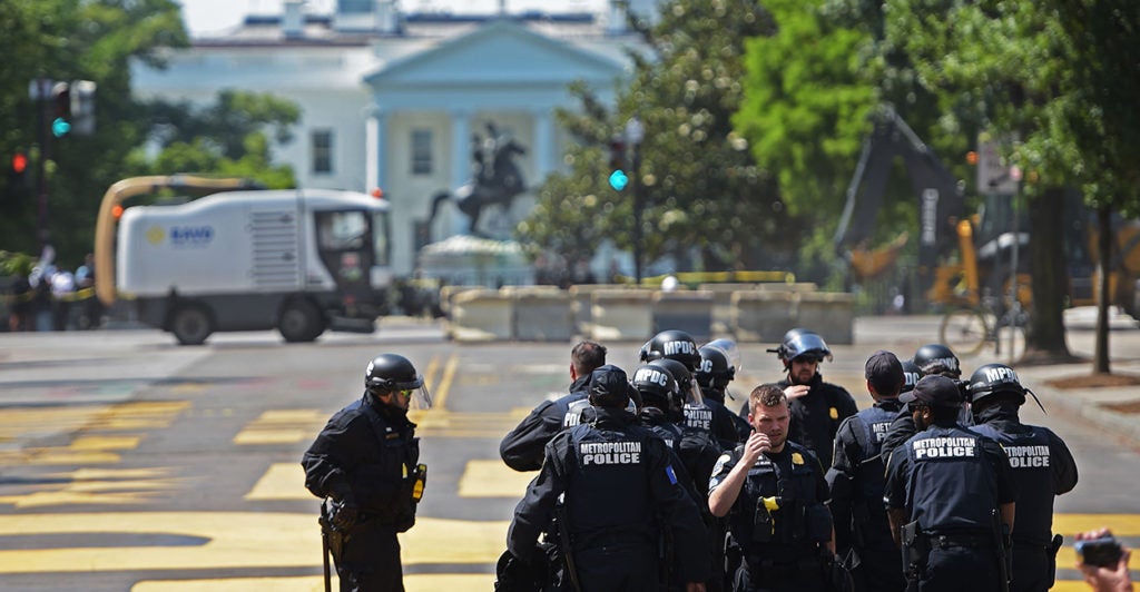 Police have arrived at the White House where protesters were trying to tear down a statue and build an autonomous zone. Tensions are high: pic.twitter.com/TFnkOR8cs6