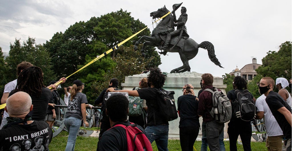 Lee Michael Cantrell, 47; Connor Matthew Judd, 20; Ryan Lane, 37; and Graham Lloyd, 37, were charged in connection with a June 22 demonstration that tried, but failed, to rip down a statue of Andrew Jackson, the 17th president of the United States, according to a DOJ press release.