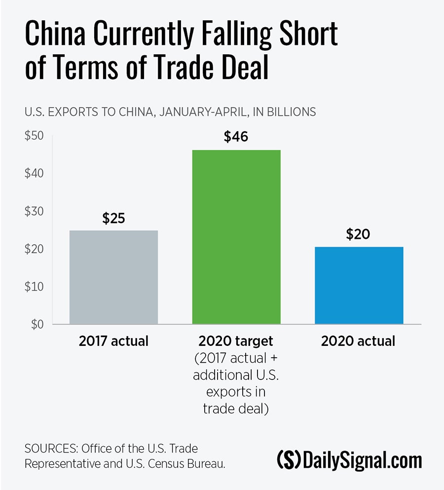If you look at the monthly exports of the Phase One goods so far this year, either starting at the beginning of the year or when the Phase One deal went into force in February, the value falls short of matching the 2017 level, let alone satisfying the additional $63.9 billion worth of goods required in just Year One.