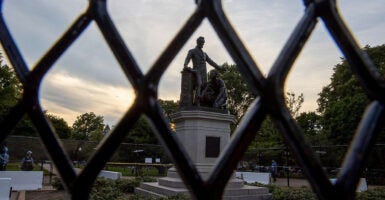 On June 23, protesters surrounded the Emancipation Memorial in Washington’s Lincoln Park, the largest park on Capitol Hill, vowing that “we’re tearing this motherf—ker down.” The threat was captured in a video tweeted by Richie McGinniss, chief video director for The Daily Caller.