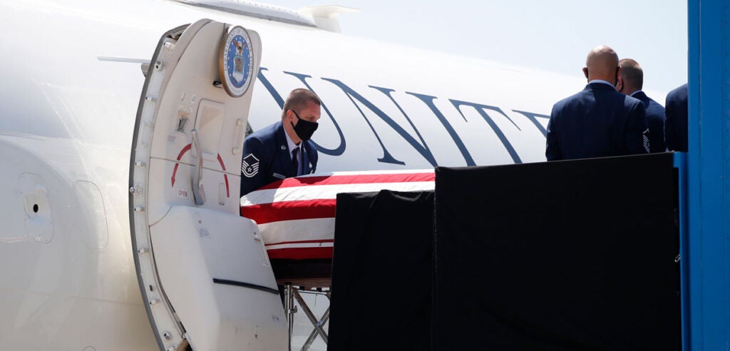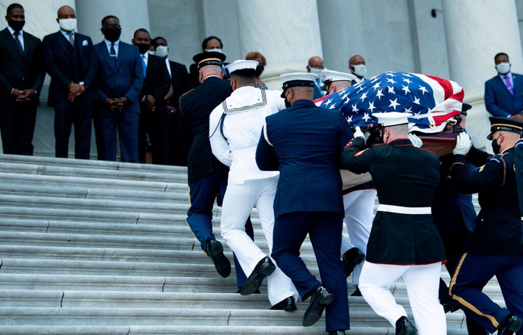 An honor guard carries the casket of Rep. John Lewis, D-Ga., into a congressional memorial service Monday at the Capitol Rotunda. (Photo: Michael A. McCoy/Getty Images)