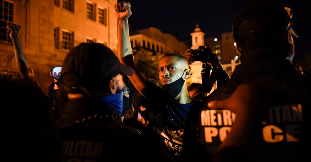Protesters in the nation’s capital—one of the largest recipients of federal aid—became a rowdy mob Thursday night outside the White House after the conclusion of President Donald Trump’s acceptance speech during the Republican National Convention.