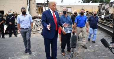 Trump announced $1 million in federal aid for the Kenosha Police Department, $4 million to help small businesses rebuild, and $42 million for public safety across the state of Wisconsin, including for police and prosecutors.