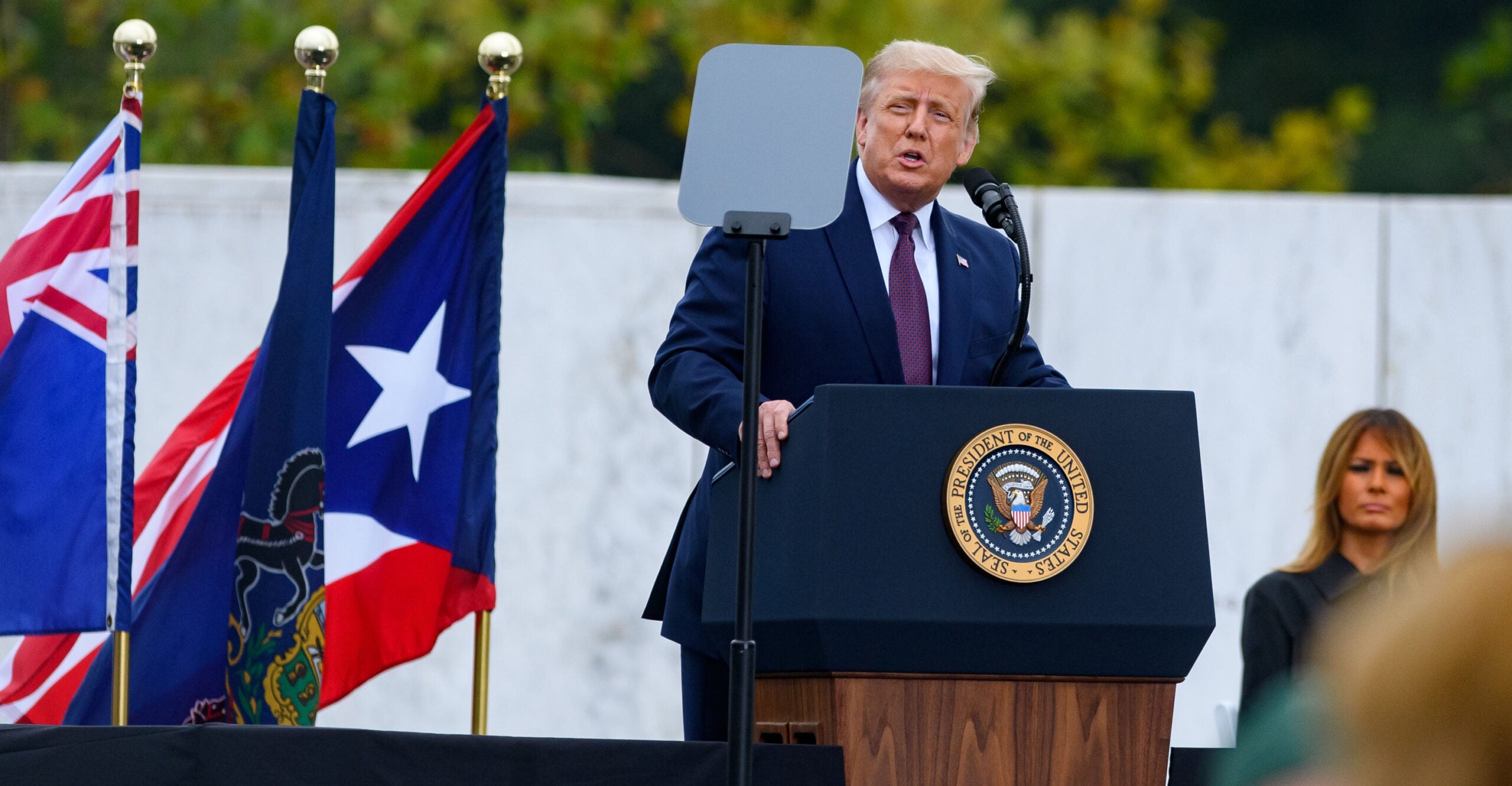 President Donald Trump cited grandparents traveling on vacation, a student returning to college, another returning from celebrating his grandmother’s 100th birthday, and a woman three months pregnant as examples of those who died as heroes 19 years ago aboard United Airlines Flight 93.