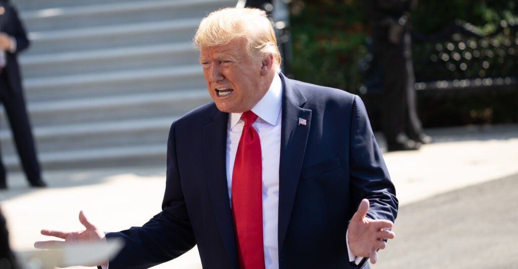 “I think my base relies very much on common sense, and they rely on me in terms of telling them what’s happening,” Trump told reporters outside the White House before boarding Marine One on Aug. 9, 2019. “I think meaningful background checks are really positive. Politically, I don’t know. Good, bad, or indifferent, I don’t want crazy people having guns.”