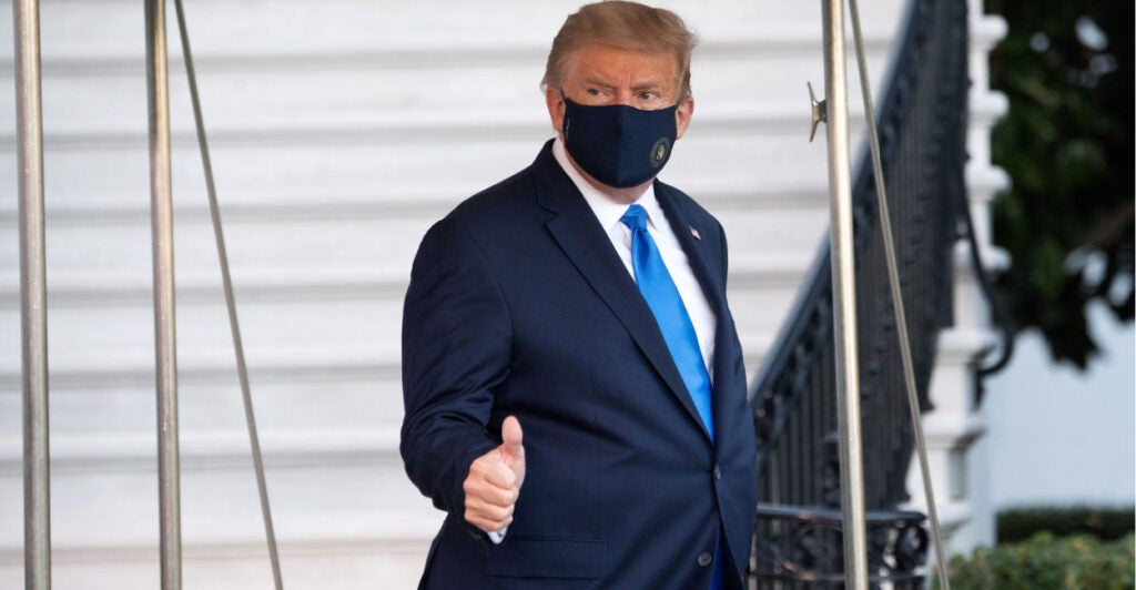 “I want to thank everybody for the tremendous support. I’m going to Walter Reed hospital,” Trump said in a brief video announcement from the White House.