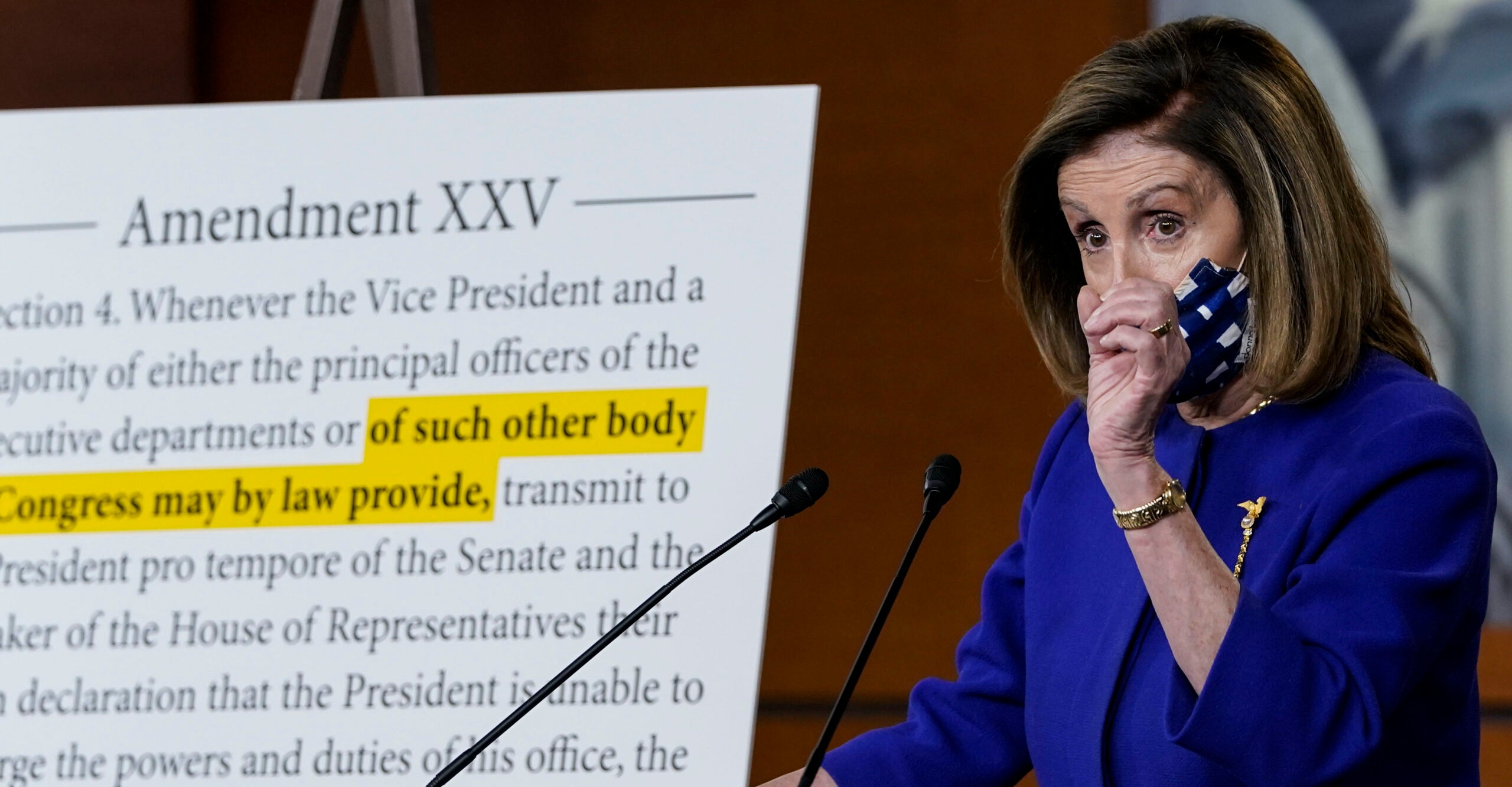At Friday’s press conference, Pelosi was open to applying the 25th Amendment to Trump at a later time.